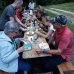 Die Ersten zogen schon mal in die gute Stube der Bergwachthütte, mit den Salaten und dem Nachtisch, um. Blitz und Donner sorgten dann dafür, dass auch die Letzten das Trockene suchten. Es tat der Stimmung aber keinen Abbruch und bei schönen Gesprächen ( natürlich auch über Fußball ) ließen wir unser Grillfestle ausklingen.