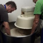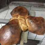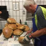 Siegfried hat unsere Öfen am Donnerstag bereits mehrmals angeheizt, so dass Donnerstag ab 21.30h die Nachtschicht mit teigen und backen beginnen konnte. Ab 6h am Freitagmorgen wurde die Nachtschicht abgelöst und ab 7h wurde verkauft. Bereits zur Mittagszeit war unser Brotregal leer. Ab diesem Zeitpunkt wurden die Brote frisch aus dem Ofen sofort verkauft.