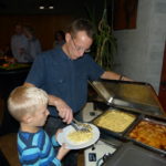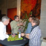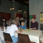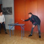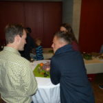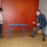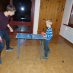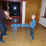 Zünftig ging es in der Küche zu, wo Markus und Manuel mit Freunden die Gäste mit allerlei Getränken versorgten. Nico hatte ein Ratespiel besonderer Art vorbereitet. Beim “großen Preis” ging es in drei Gruppen darum, Material für einen Brückenbau zu erspielen. Schnur, Klebeband, Holzspieße und Bierdeckel konnten bei richtiger Antwort erspielt werden. Mit den erspielten Utensilien musste dann eine Brücke gebaut werden, die über eine Länge von 50 cm ein betimmtes Gewicht tragen musste. Verschiedene Modelle wurden in 10min gebastelt, aber nur eine Brücke schaffte das Gewicht. Für die Sieger gab es außer Applaus dann noch was Süßes. Für alle, die sich sportlich betätigen wollten, wurde eine Mini-Tischtennisplatte aufgebaut.