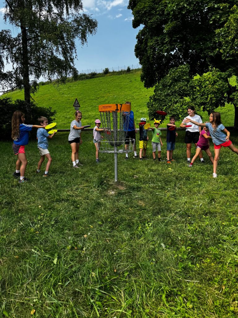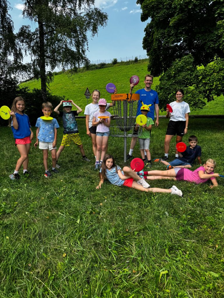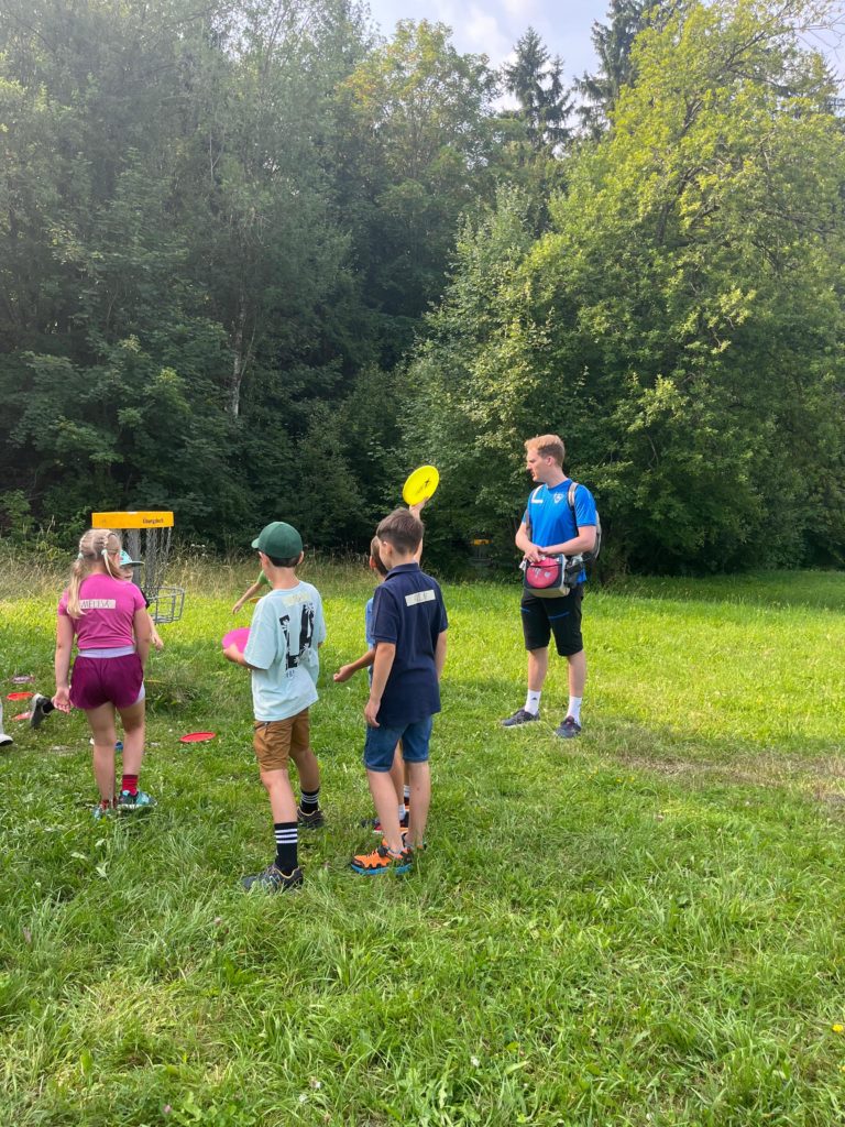 Am 16.08. ging es mit 10 Kindern los zum Discgolf Parcours auf der Eninger Weide. Dort angekommen, gab es zuerst eine Einführung in die Grundlagen des Frisbeesports aus Amerika. Danach durften die Driver, Midranges und Putter selbst in die Hand genommen werden. Das Ziel hieß: mit möglichst wenig Würfen in die oft 100 Meter entfernten Körbe treffen.